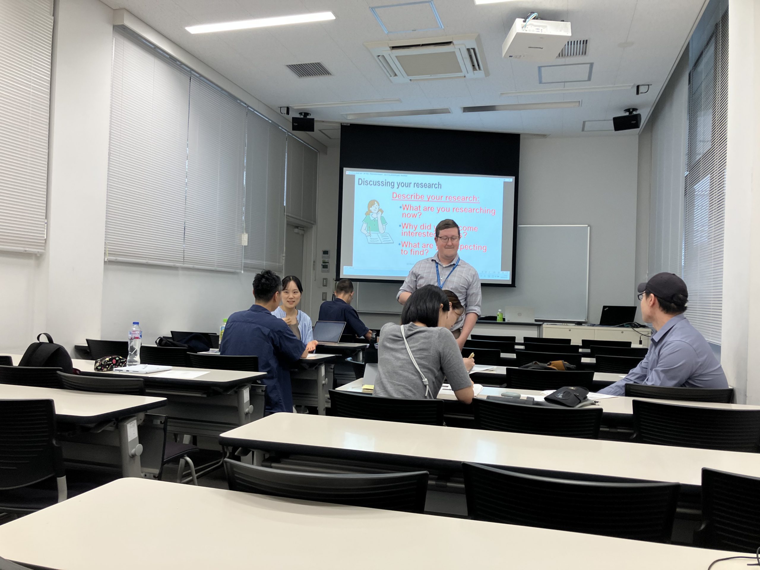 国際的な研究会やワークショップやポスターセッションにおいて自分の研究を英語で説明し、議論ができるようになることを目的とした講座で、