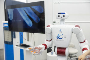 パビリオン内では「洗濯物を自動でたたむロボット」「靴下を履く動作をサポートをするロボット」など、未来の家事や介護を支えるロボット等が展示されました。