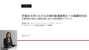 早稲田大学における合理的配慮義務化への組織的対応:支援体制の統合と運用改善に向けた試行錯誤のプロセス